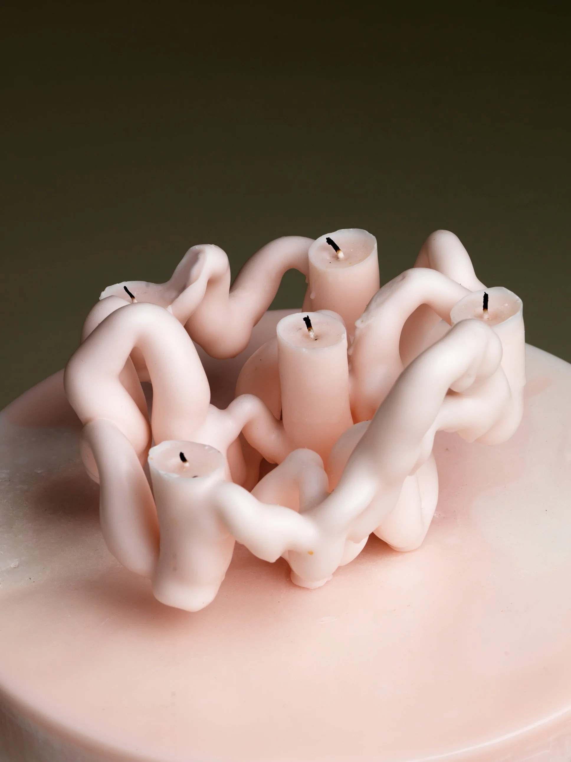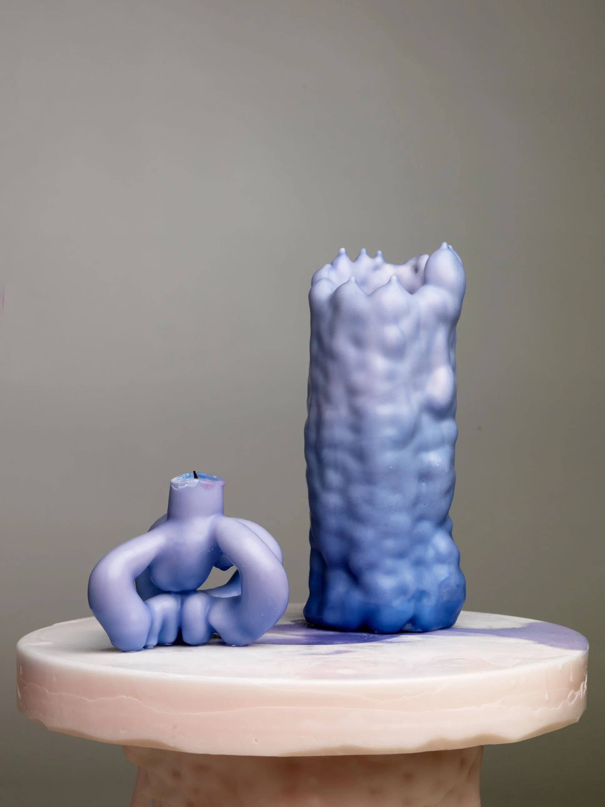Wax dipping on steel base. Objects are made with traditional and experimental processes of candle making. Our use of candles generate large amounts of leftovers and inspiration comes from the durability of the material contrasting to our use of it.